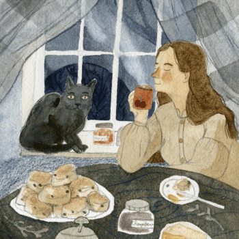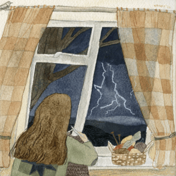 Lightning original watercolour illustration from Calmtober 15x15cm
