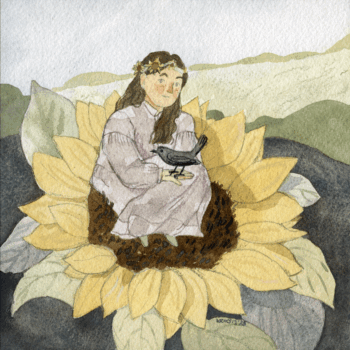 Sunflower original watercolour illustration from Calmtober 15x15cm