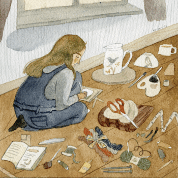 Quilt original watercolour illustration from Calmtober 15x15cm