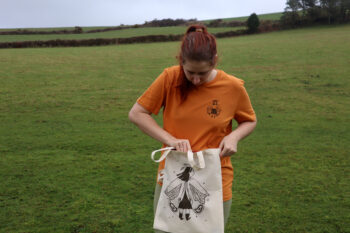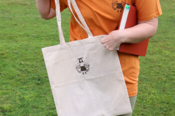 Moth girls cotton project bag in chocolate ink colour.