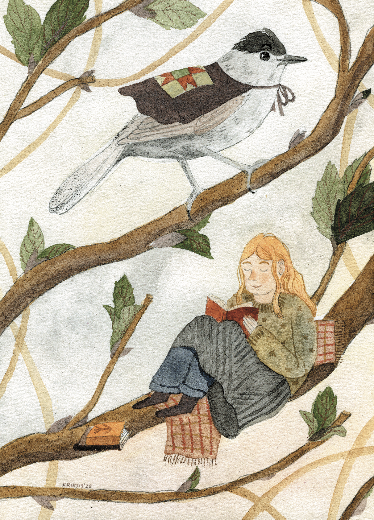 A5 Blackcap and the girl art print. This is artwork is Patreon reward from March 2026