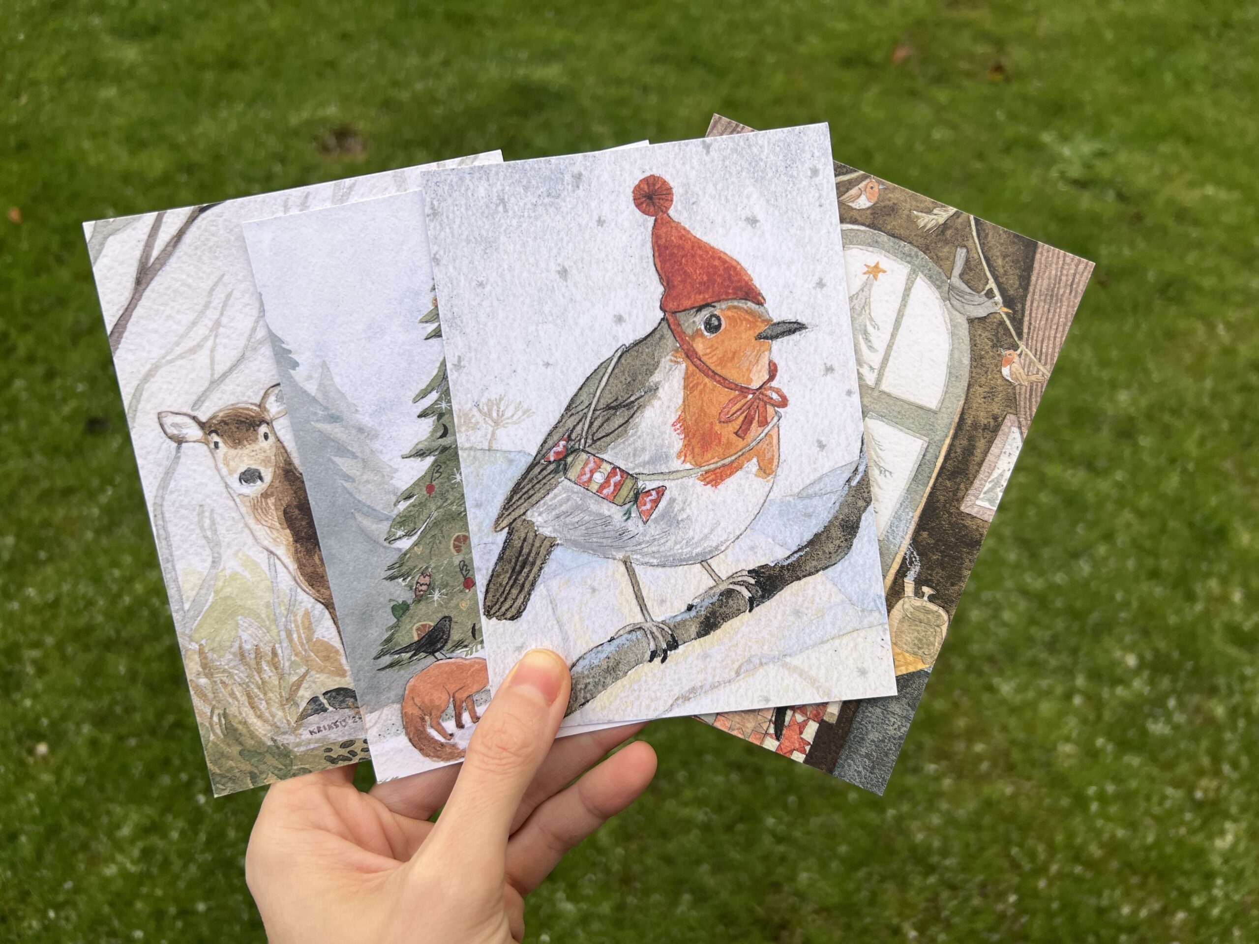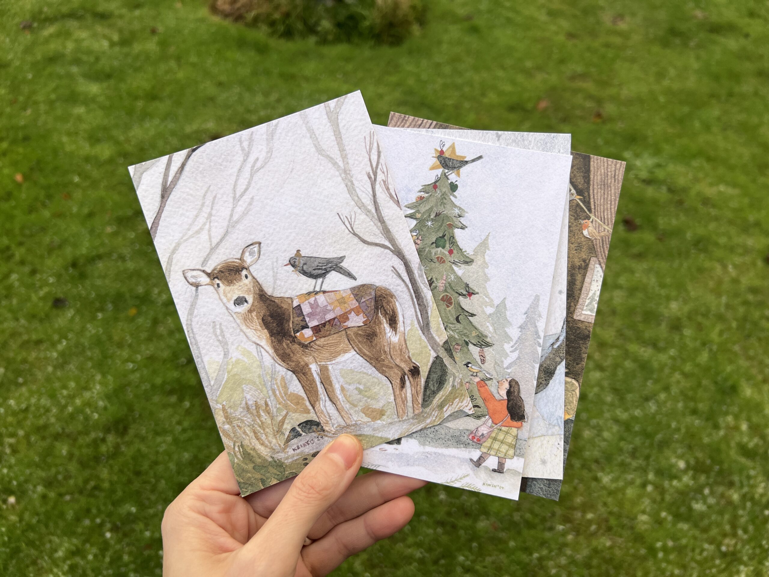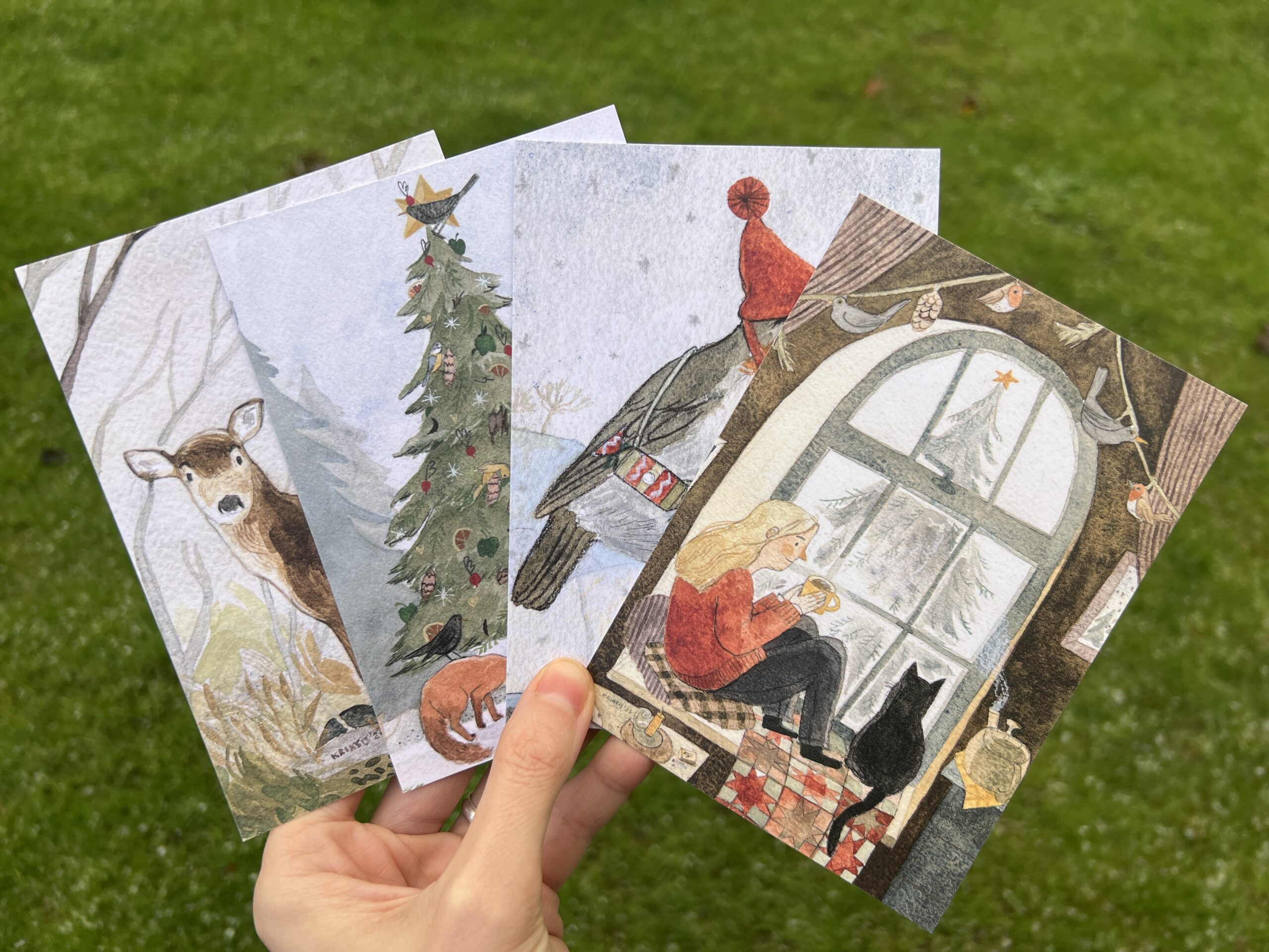 These postcards are created using my watercolour illustrations made in 2024 and 2025. Printed onto high quality FSC certified, 100% Recycled, Carbon Offset, Fully Recyclable cards.