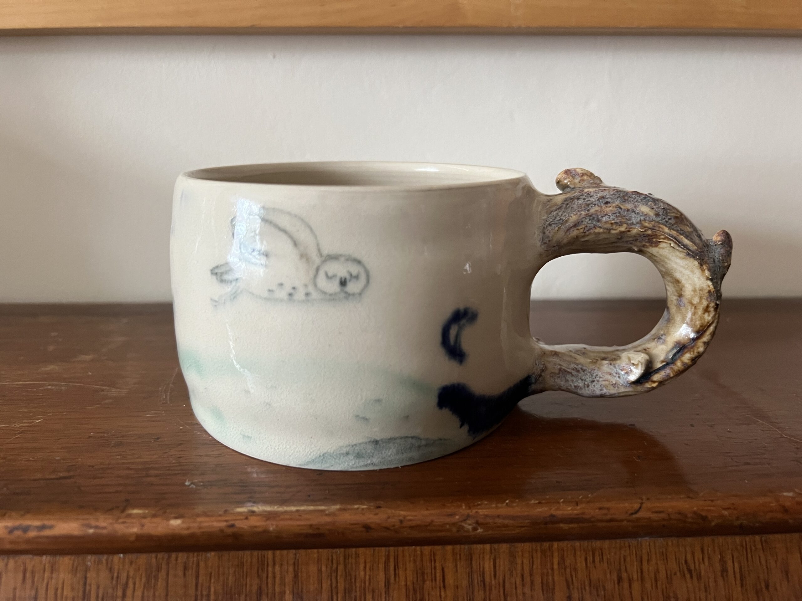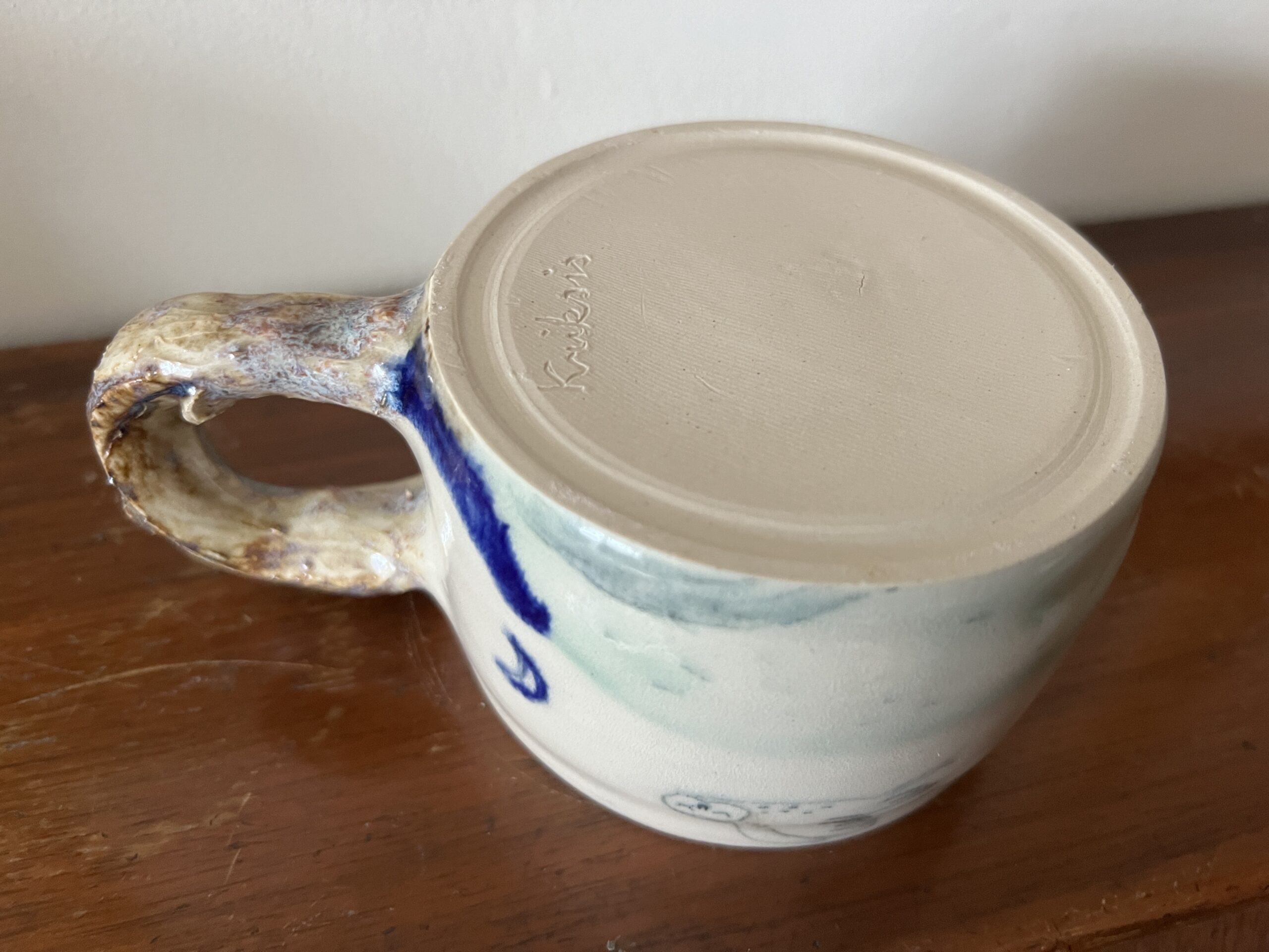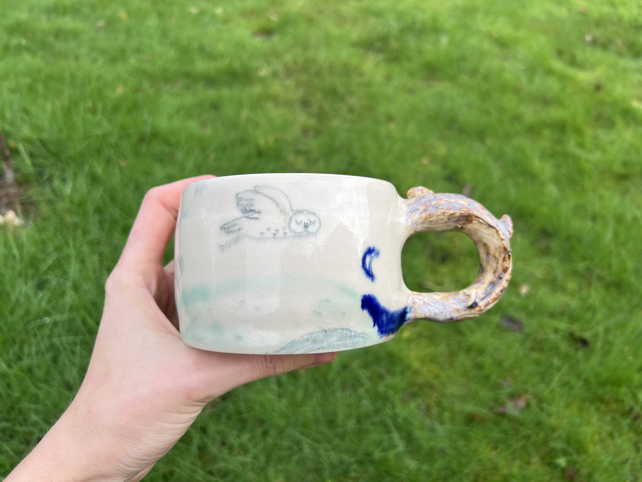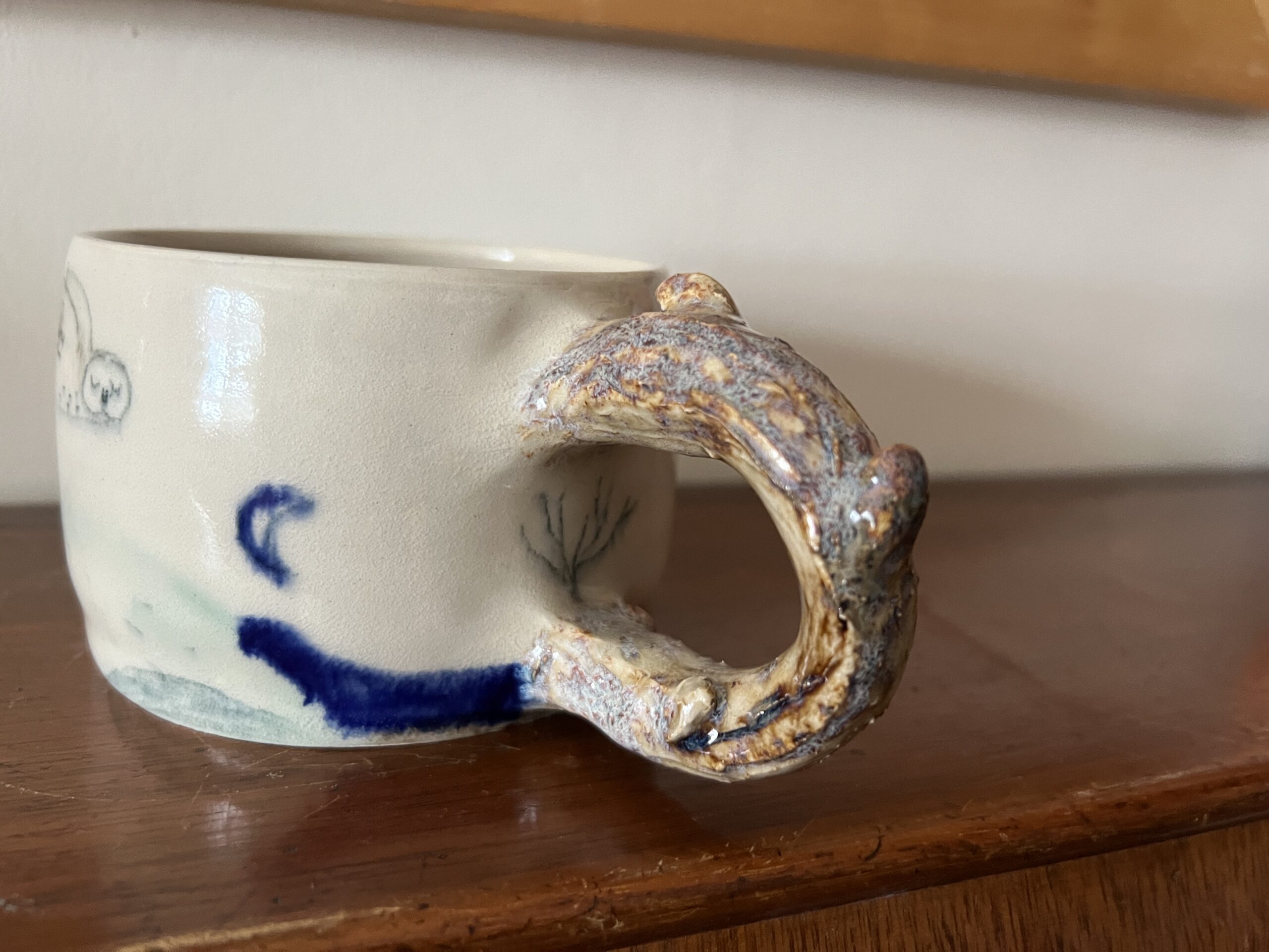 I made this mug while doing pottery sessions at Lowenek studio. The size 9cm diameter, 7cm height. 436gr weight. I am shipping to the UK only as I am afraid of breakage abroad. Thank you for understanding. If by any chance you order this from the abroad I cannot guarantee safe delivery. Therefore please UK only!