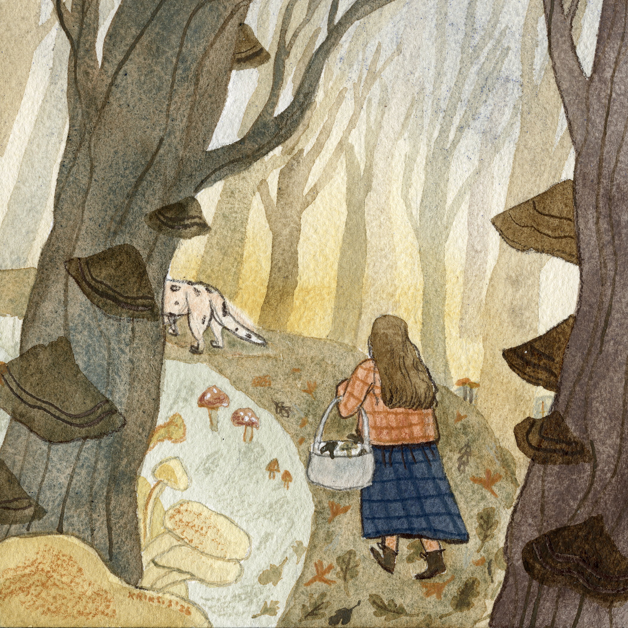 Original watercolour illustration painted in 2025 October as part of Calmtober drawing challenge. Artwork does not include frame! 15x15cm (5.9×5.9inches)